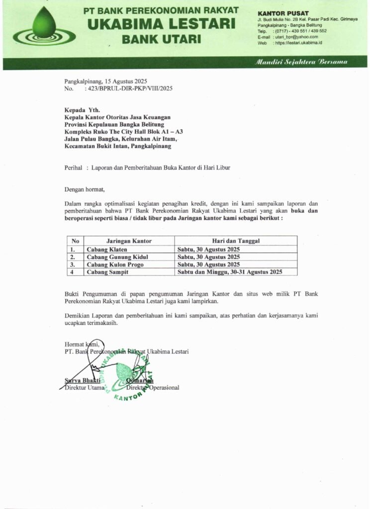 PengumumanPENGUMUMAN Ukabima Lestari5 bulan ago2 bulan ago01 mins Navigasi pos Previous: LAPORAN PUBLIKASI TW I TAHUN 2025 Tinggalkan Balasan Batalkan balasanAlamat email Anda tidak akan dipublikasikan. Ruas yang wajib ditandai *Komentar * Nama * Email * Situs Web Simpan nama, email, dan situs web saya pada peramban ini untuk komentar saya berikutnya.